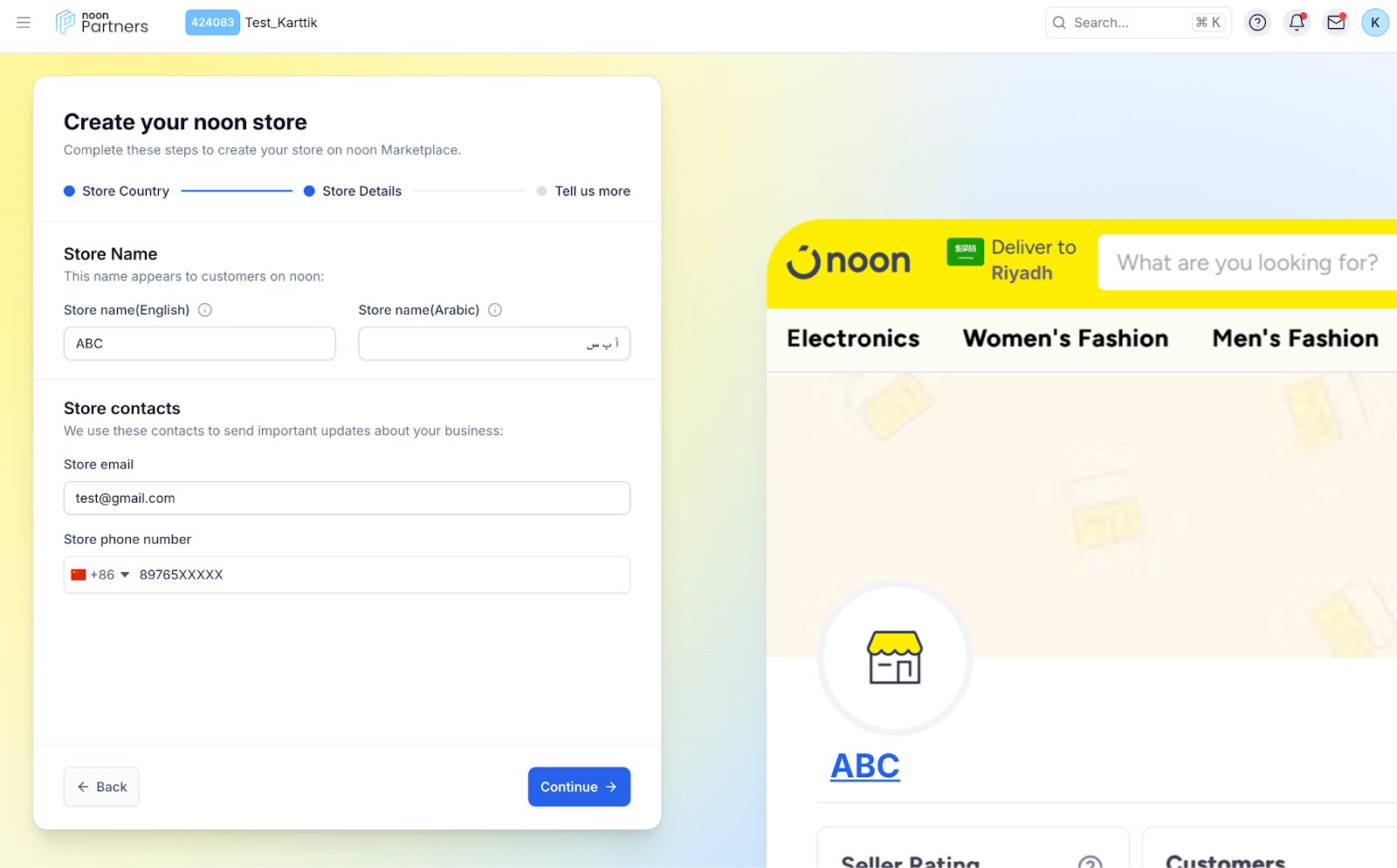 Provide a store name in both English and Arabic. This store name will be visible to the customers