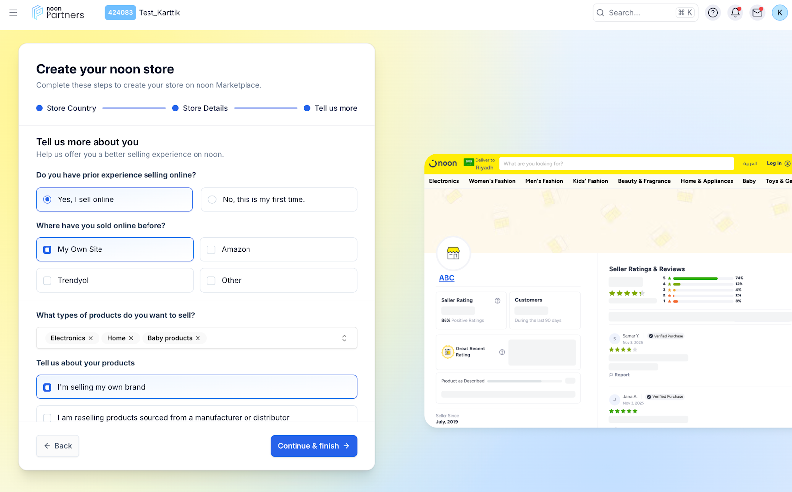 Select the country that you want to list your products in (UAE or KSA) and the country where your business is registered in?