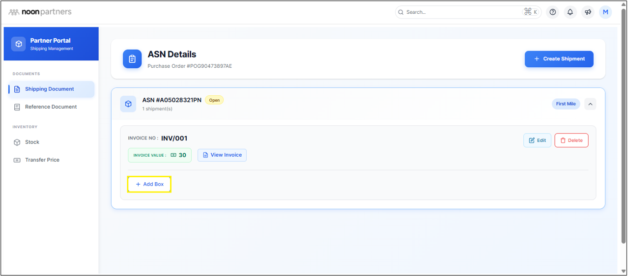- Once the shipment is created, you will be able to see the shipment details.