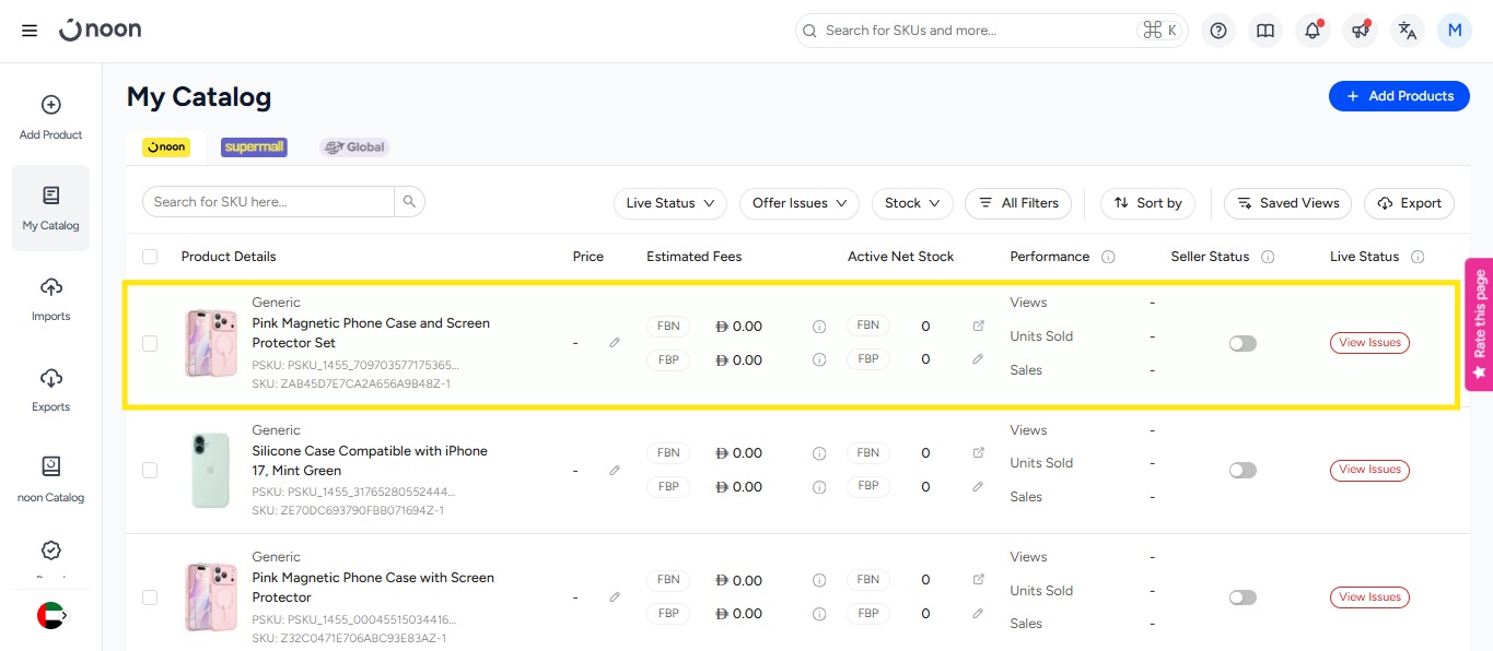 x_noon_sku | Optional | N20174454A | The noon SKU. This will only be available for linked products. |