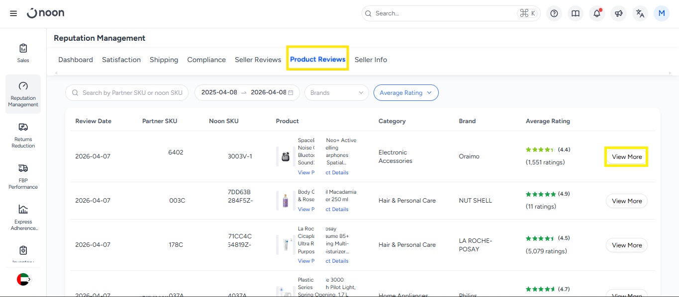The product rating & reviews are displayed underneath the product title on the Product Display Page on noon. It includes: