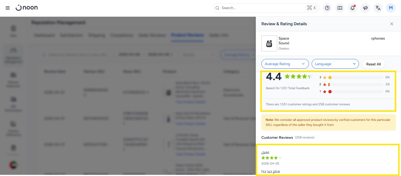If you notice any reviews including abusive language or promotional content on your feedback page, contact us at seller@noon.com and we’ll get right back to you.