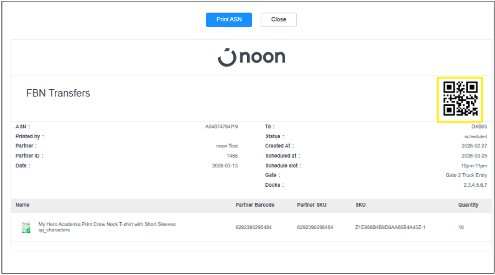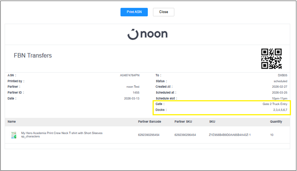 - In the next page, you will see the details of your ASN. You can check the gate and dock number on the ASN to know where you have to go when you arrive at our facility.