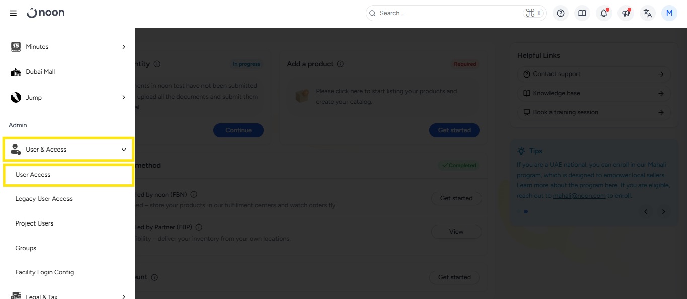 - Log in to the Seller Lab, and then click on User & Access, and then go to the User Access Page.