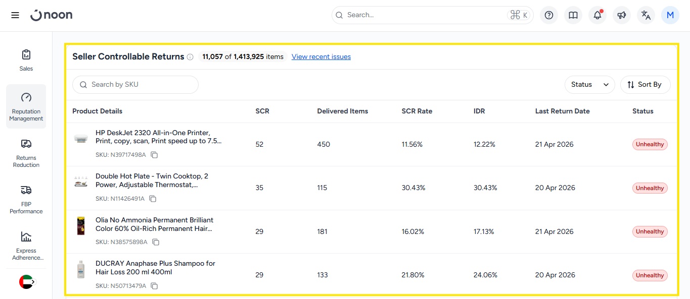 - Returns: Monitor return trends and identify seller-controllable return reasons using the Returns Reduction Dashboard. This dashboard helps you analyze the causes of returns and take proactive steps to reduce them.