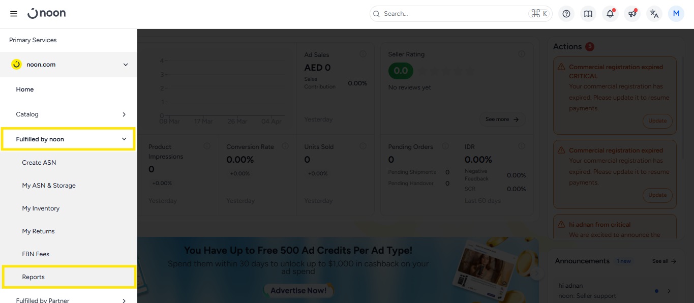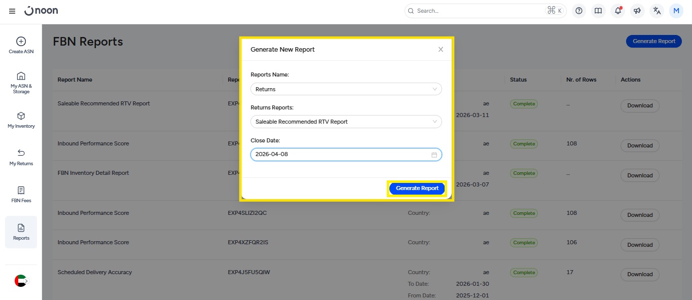 To help you avoid Non-Saleable Item Storage Fees and manage your non-saleable inventory efficiently, Noon provides the Non-Saleable Recommended RTV Report. This report details non-saleable items stored in Noon fulfillment centers that are eligible ...
