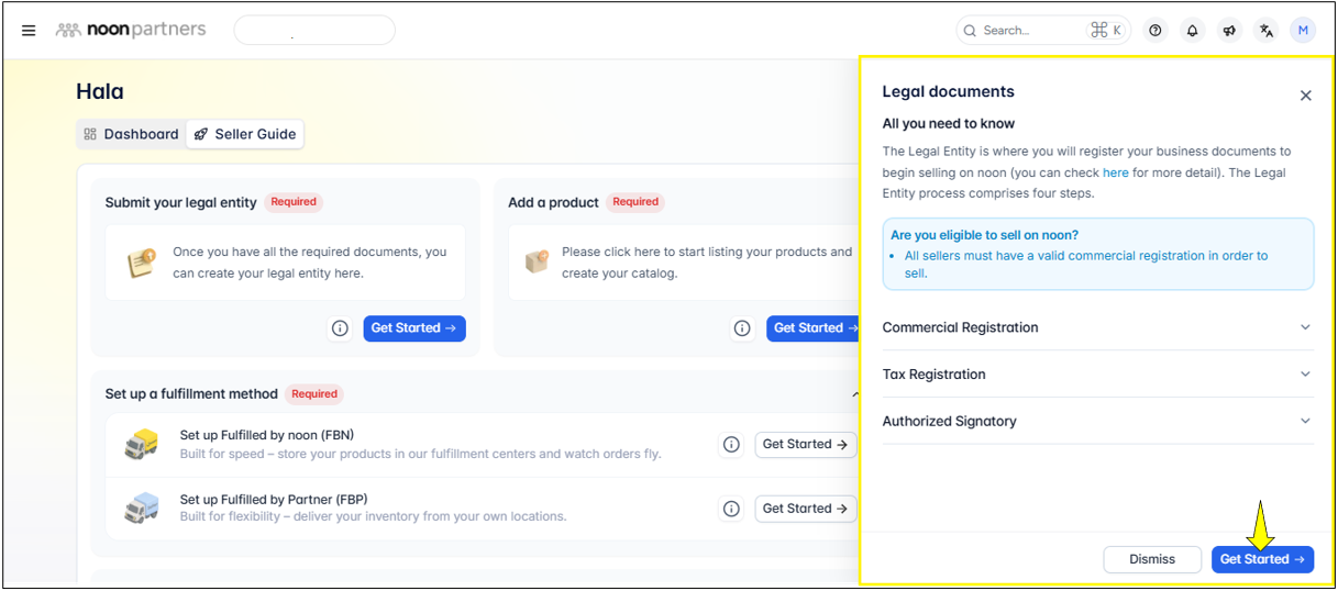 Once complete, you’re ready to start listing products on Noon by clicking on Get Started.