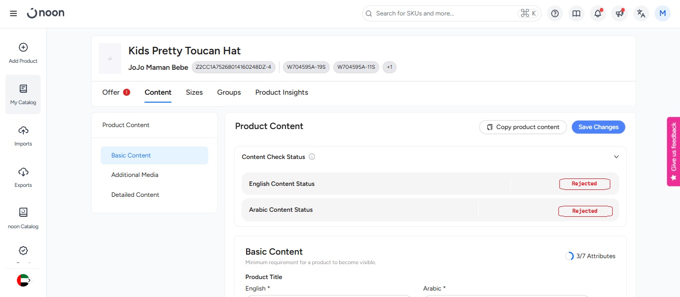authorized to sell it. Unlike Noon SKUs, the content for Seller SKUs is not