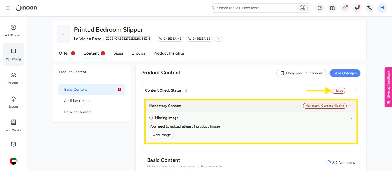 The following SKU has both a fatal content rejection and a suggestion for content improvement. You can distinguish the two based on the description under the content status on your content page on Seller Lab.