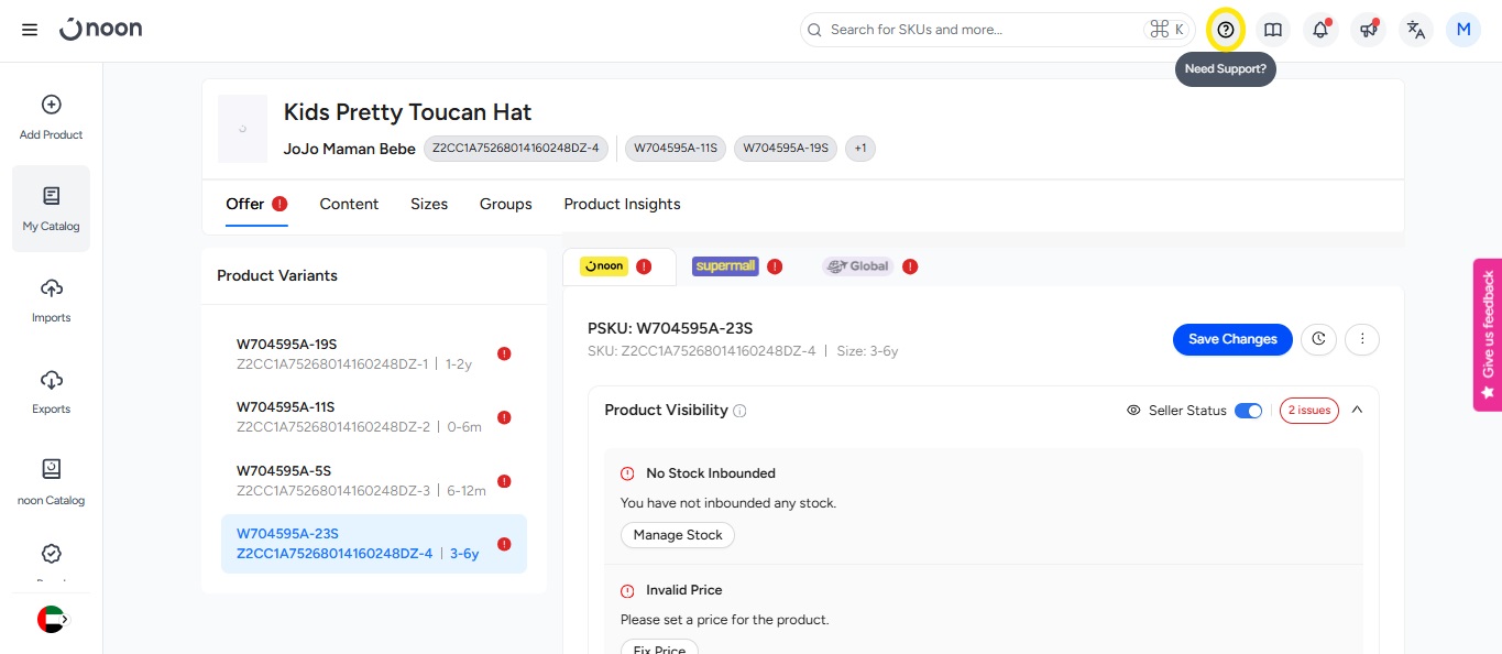 Once you make the necessary changes, click on ‘Save Changes’ or resubmit the updated Seller SKU information. |