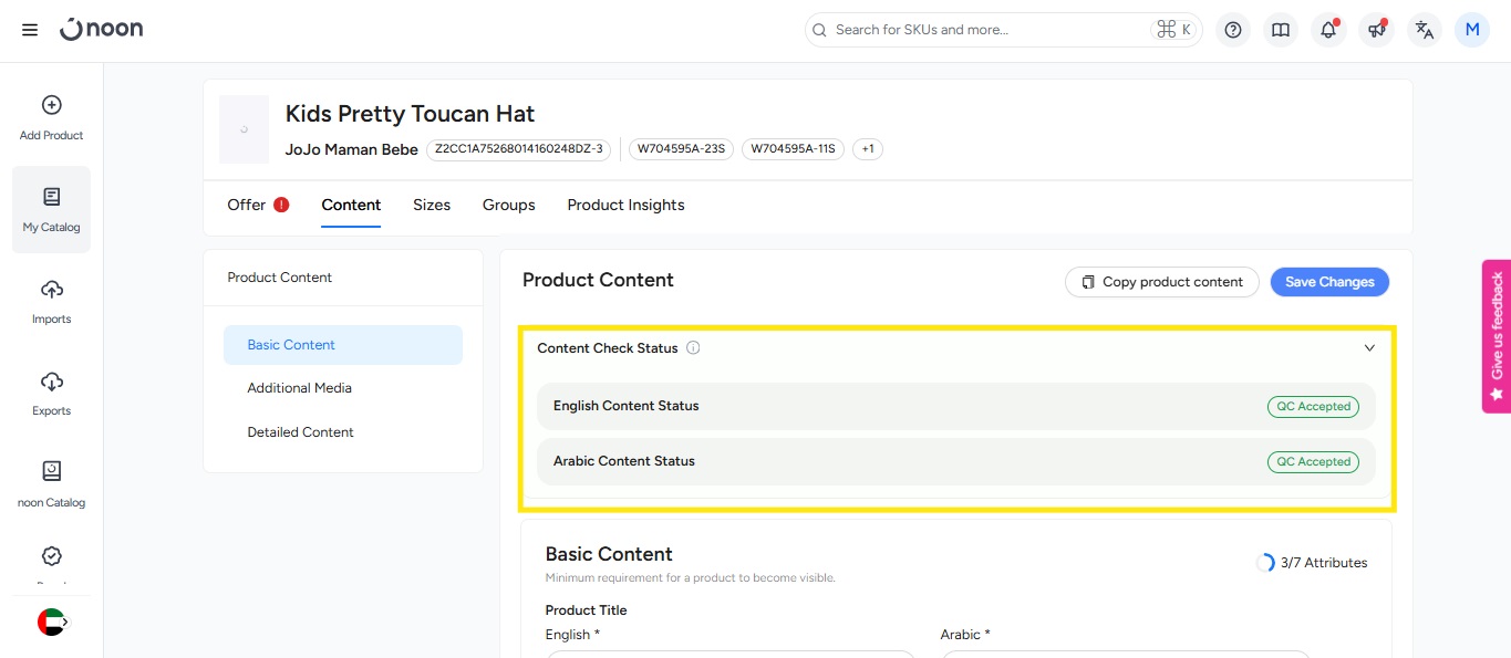 You can see the content check status in the content section of the SKU when you open an individual Seller SKU on Seller Lab.