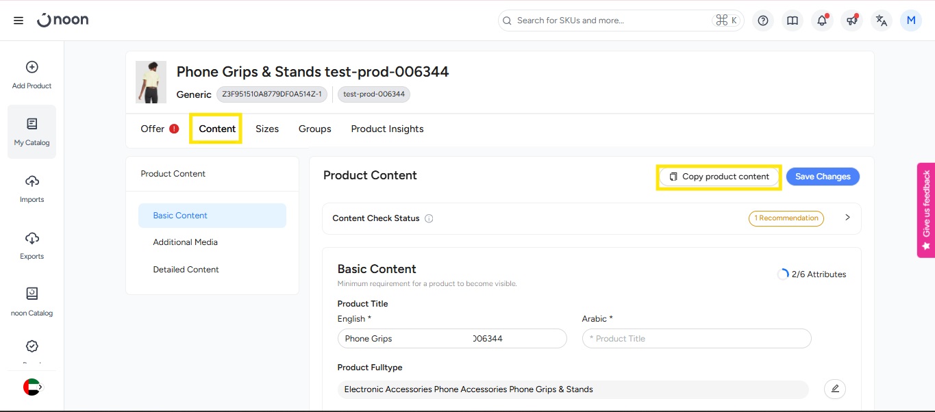 The Quick Copy Content feature in Seller Lab allows you to easily create multiple similar products by duplicating an existing Seller SKU’s content. This is particularly useful for creating variations, such as products in different colors, without manually re-entering all the details. You can quickly copy content from one SKU to another, adjust attributes as needed, and publish your new product directly in Seller Lab. This allows you to copy content directly in Seller Lab instead of using the bulk template.