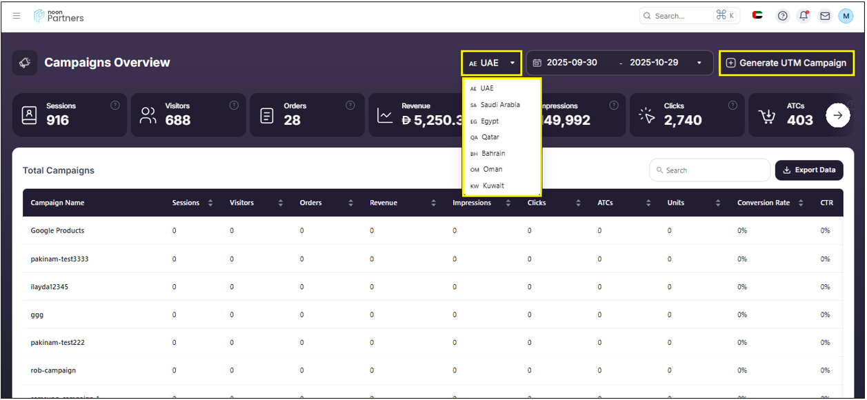 - Select the country for which you are creating the campaign and then click on Generate UTM Campaign.