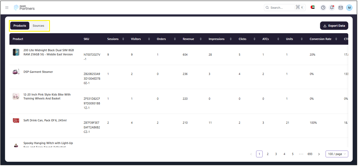 - You can scroll down on this page to see the products and the sources from where the traffic is viewing your product.