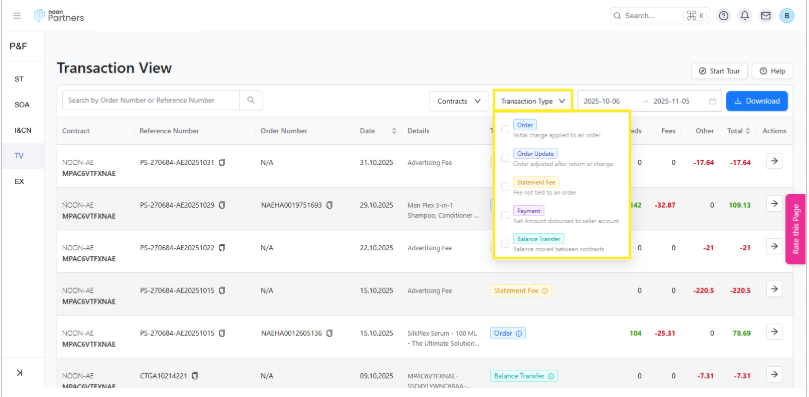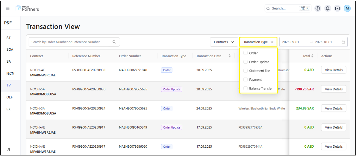 - Another filter available on this page is the Transaction Type. Refer to this table to understand each transaction type.