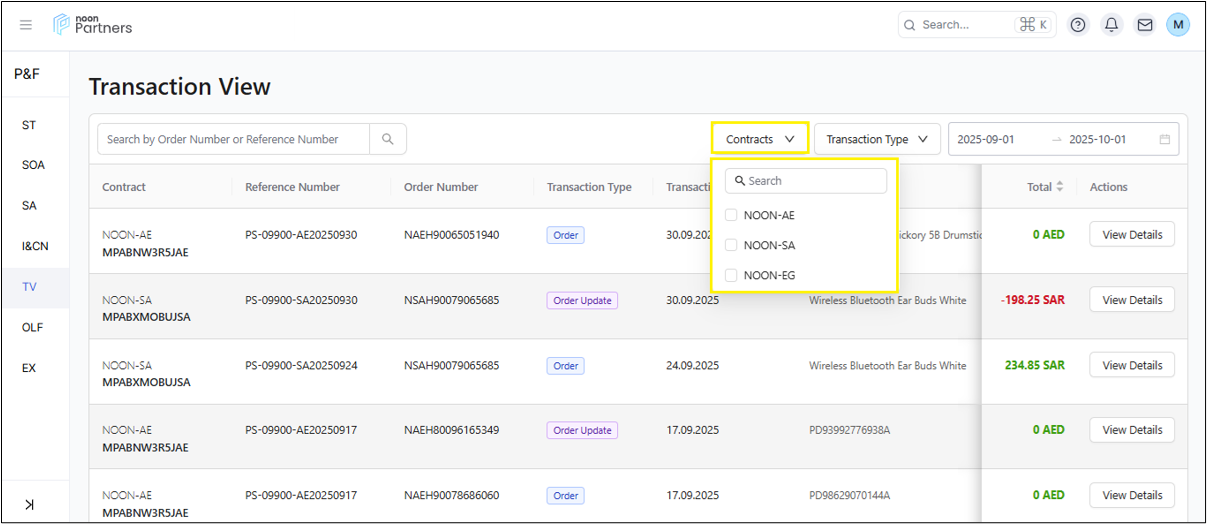 -You will have an additional filter where you can filter the information on this page based on the Contract. If you have stores in multiple countries, each country is considered a contract.