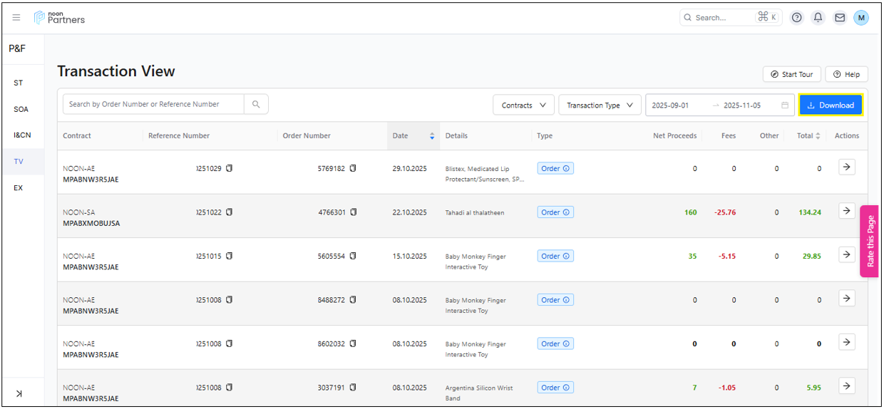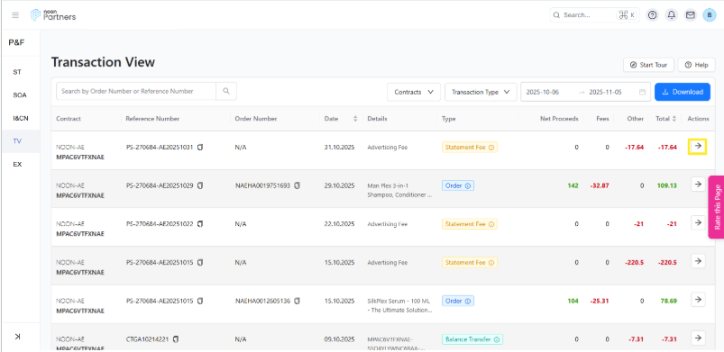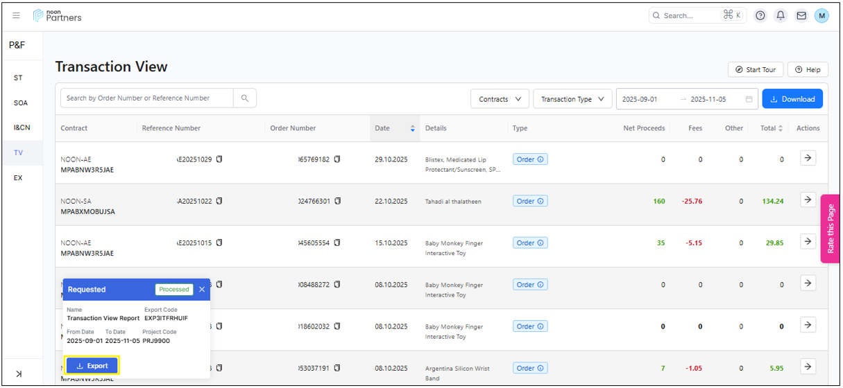 You will also find an option to download the details on the transaction view as an Excel file. To download this report, follow these simple steps.