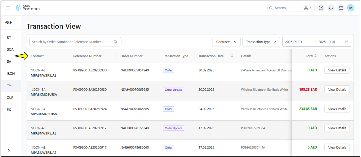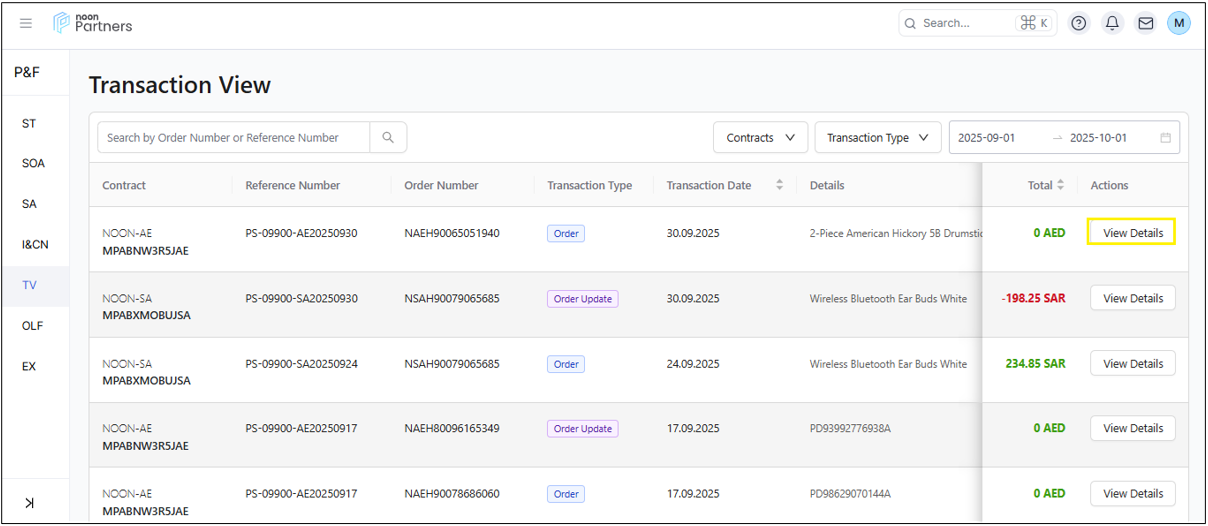 - When you click on the view details button, you will be redirected to the transaction details page. You will notice the details such as the reference number, contract, transaction type, the date of transaction, and the order number at the top.
