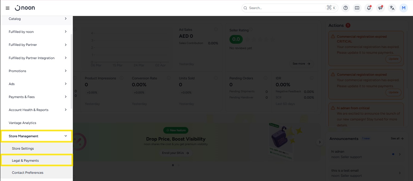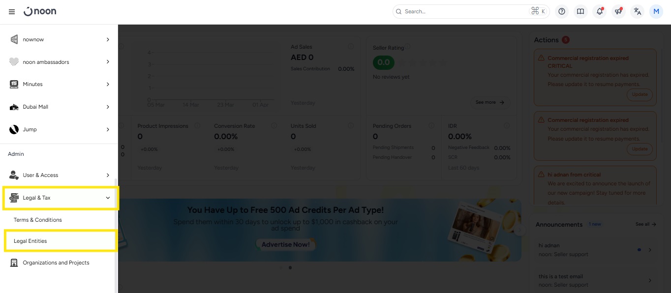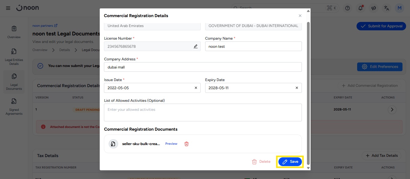 noon has launched a new document management platform, designed to give you complete control over your legal documents, including your Trade License, VAT Certificate (if applicable), Bank Details, and Authorized Signatory Details. Simply upload your documents to the platform, and our team will review and approve them. Once approved, you’ll have the flexibility to manage any future updates independently.