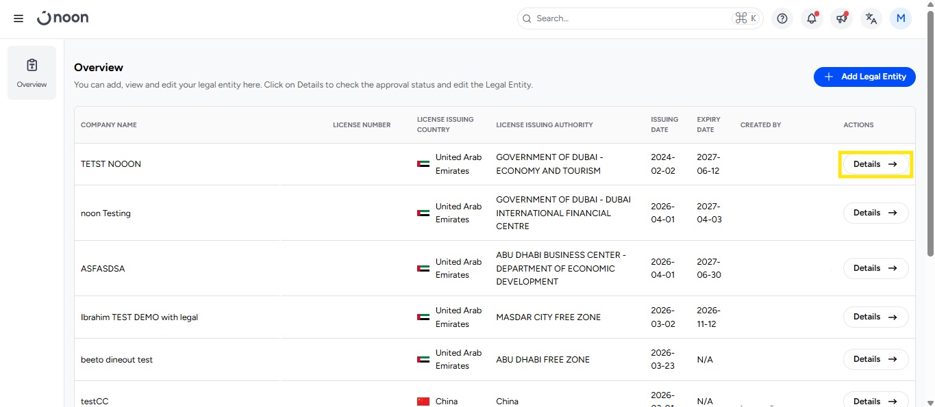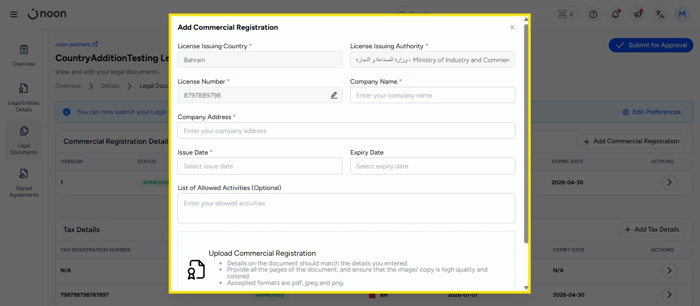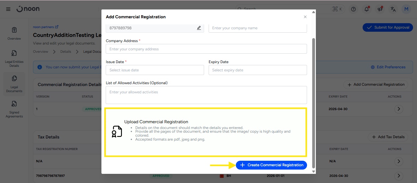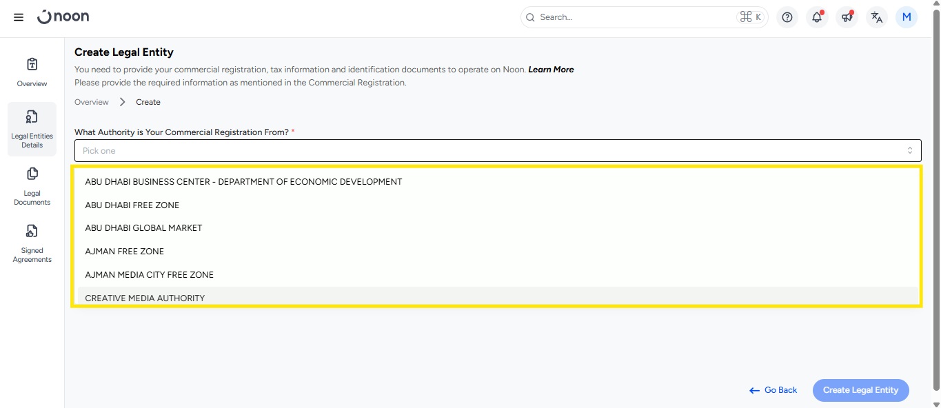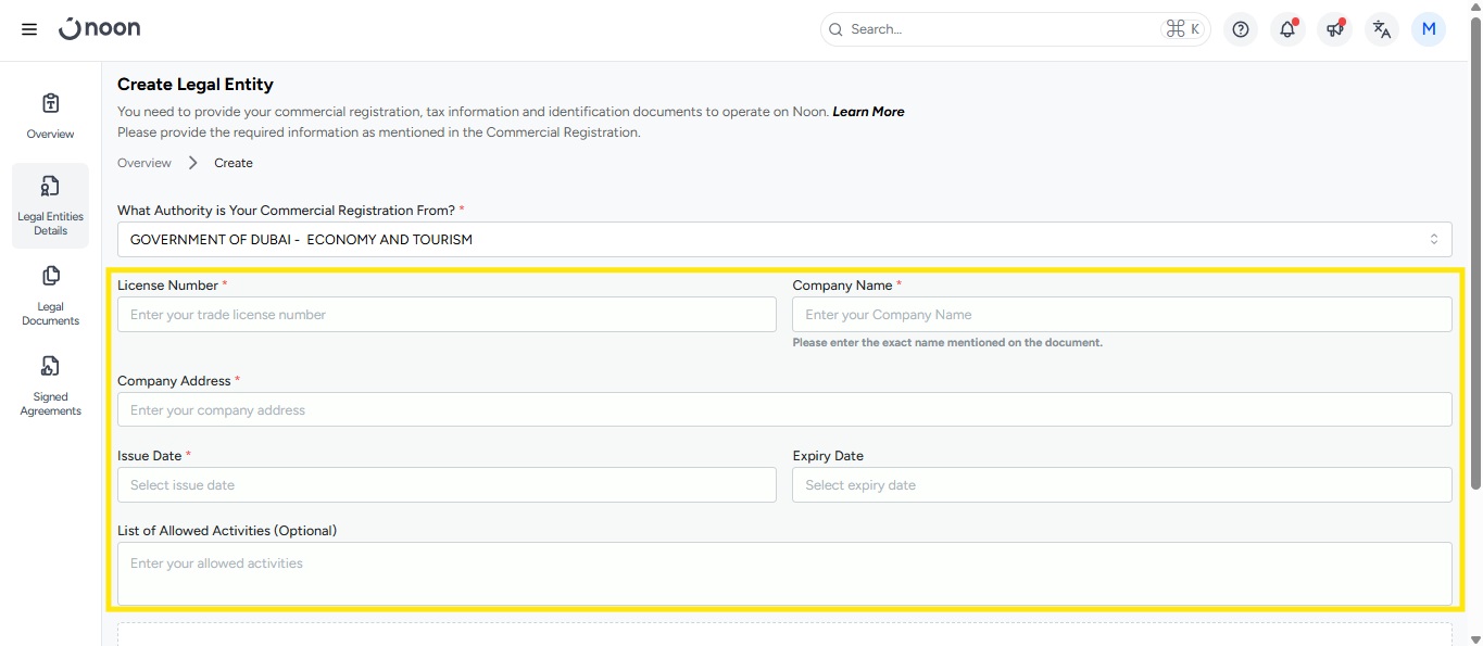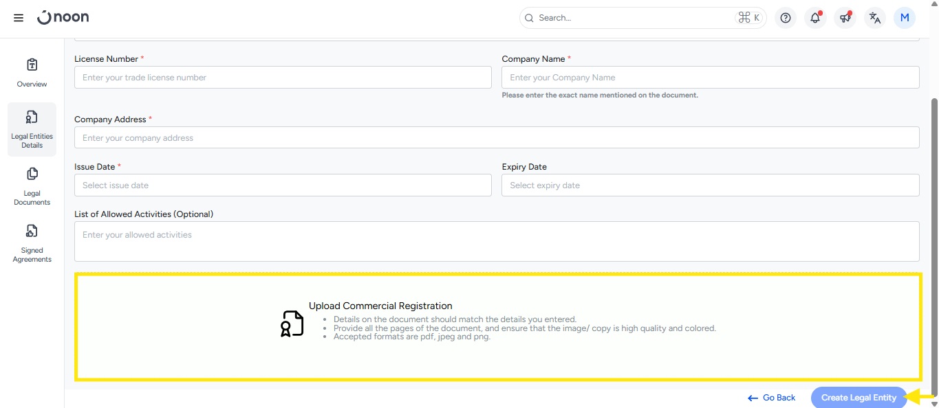 Upload your Trade License, then click Create Legal Entity.