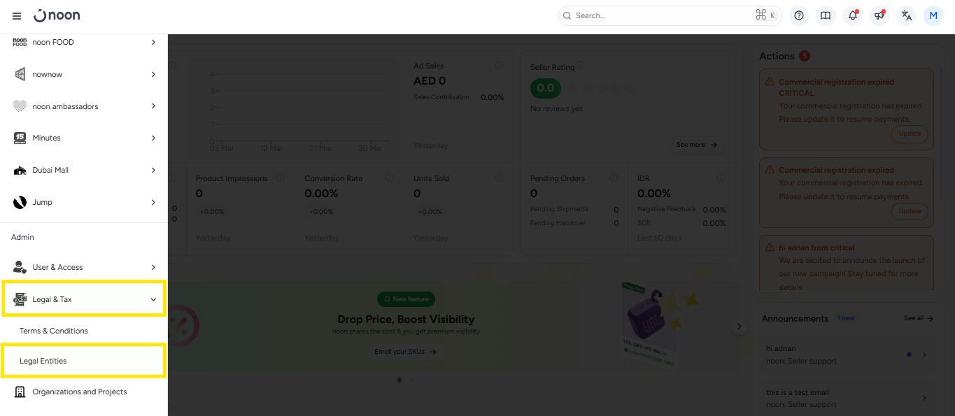 Note: Updating your company name is not the same as updating your store name on noon.If your TL number has changed, the process will be treated as creating a new Legal Entity. follow the below process
