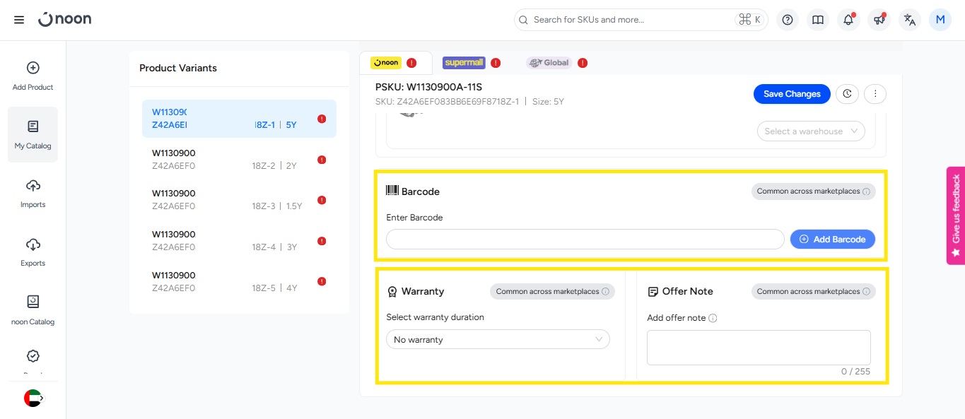 Note - Seller can map only gated brands NSKU via noon catalog. ZSKU and non -gated brands SKU’s need to list via single and bulk SKU creation.