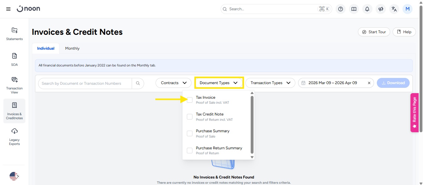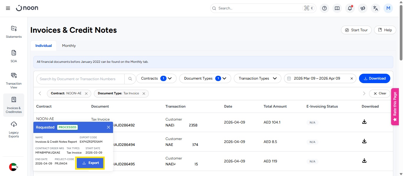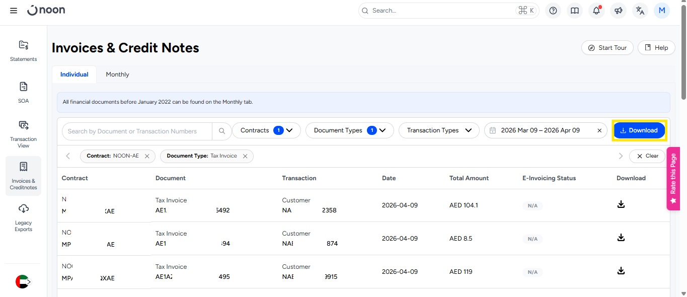 noon provides sellers with weekly financial statements summarizing sales, returns, fees, and compensations. These documents are accessible through the Invoices & Credit notes on Seller Lab and are crucial for tracking your earnings and understanding ...