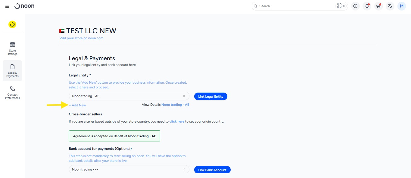 - Send an email to seller@noon.com to delink the old legal entity from your store. You will be notified by email once this is done
